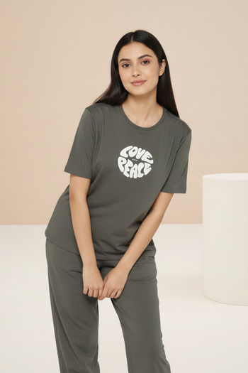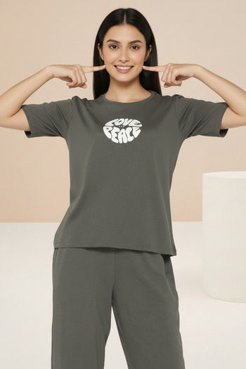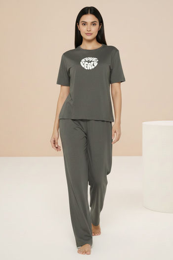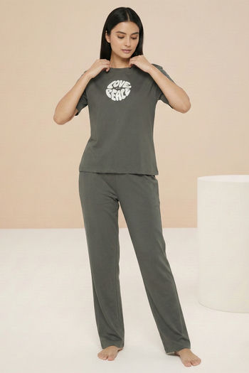 Zivame Knit Cotton Loungewear Set - Forestnight