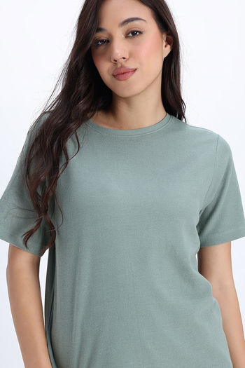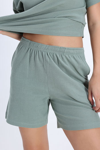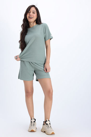 Zivame Knit Cotton Loungewear Set - Iceberg Green