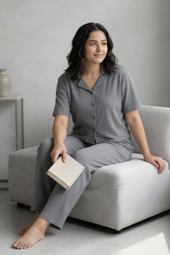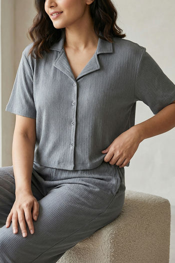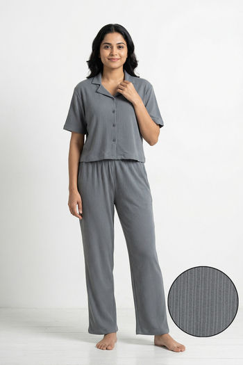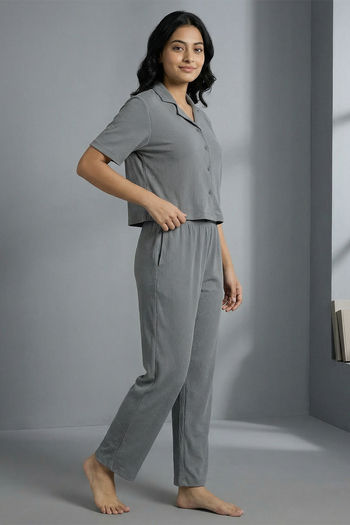 Zivame Knit Cotton Loungewear Set - Monument