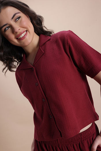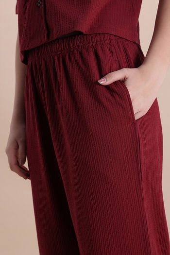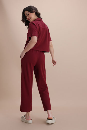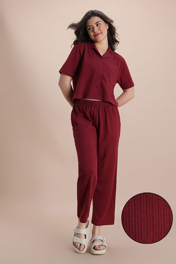 Zivame Knit Cotton Loungewear Set - New Maroon