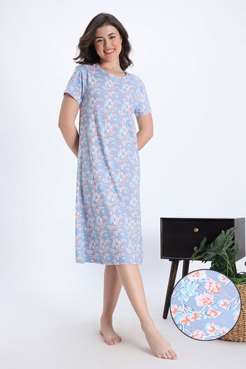 Zivame Knit Cotton Mid Length Nightdress - Gray Quill