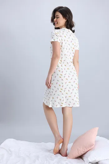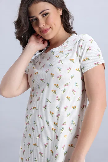 Zivame Knit Cotton Mid Length Nightdress - Marshmallow