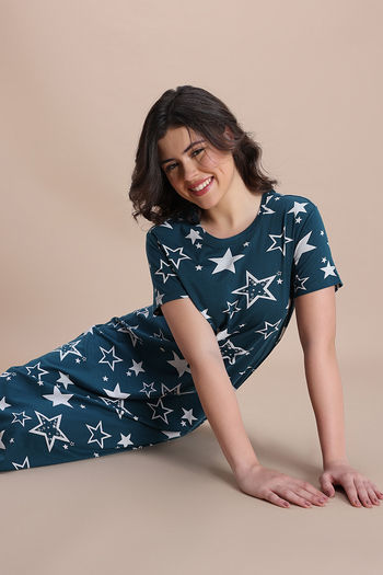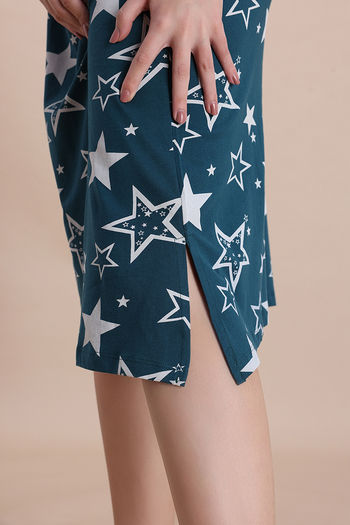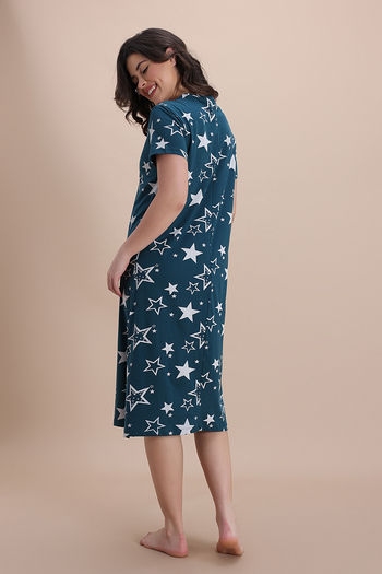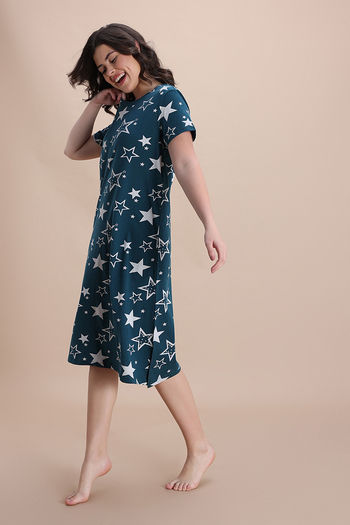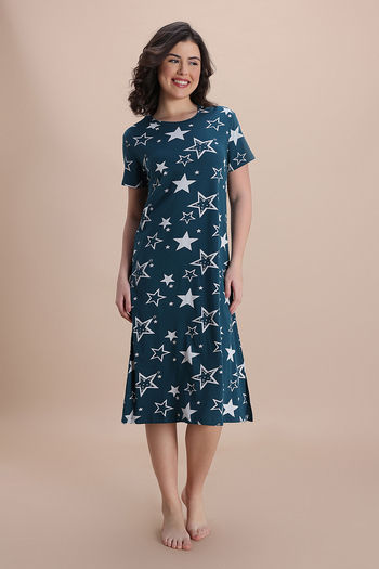 Zivame Knit Cotton Mid Length Nightdress - Mountain View
