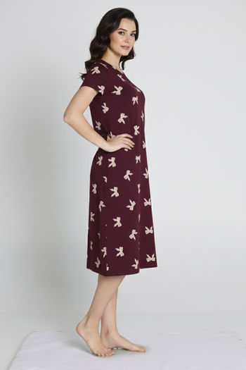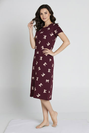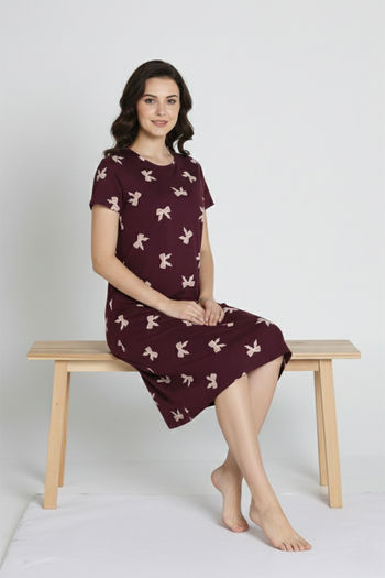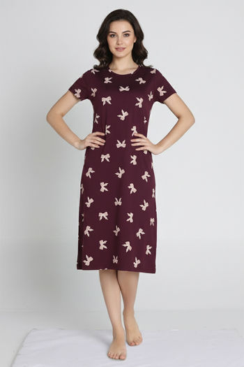Zivame Knit Cotton Mid Length Nightdress - Peach Whip