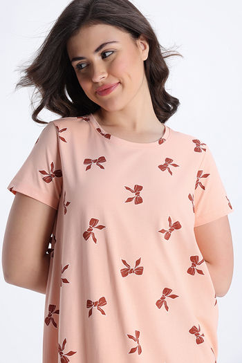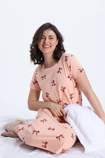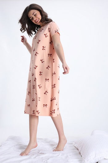 Zivame Knit Cotton Mid Length Nightdress - Peach Whip