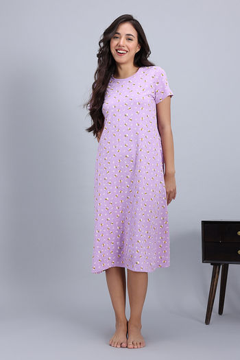 Zivame Knit Cotton Mid Length Nightwear - Lupine
