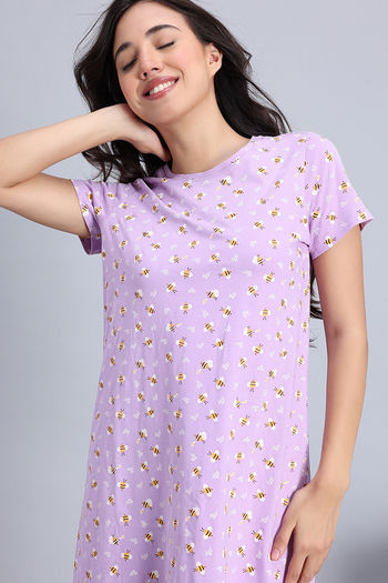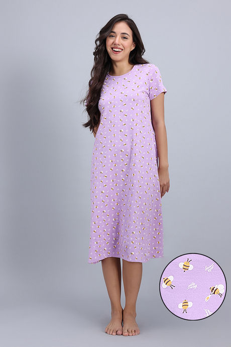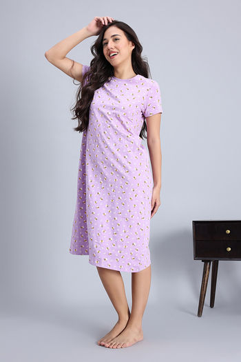 Zivame Knit Cotton Mid Length Nightwear - Lupine