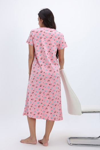 Zivame Farm Lore Knit Cotton Mid Length Nightwear - Peony Pink
