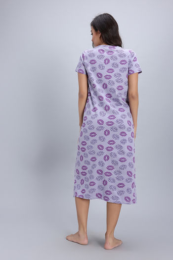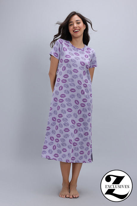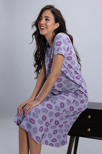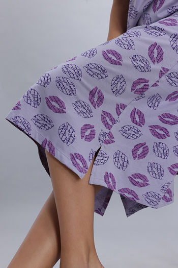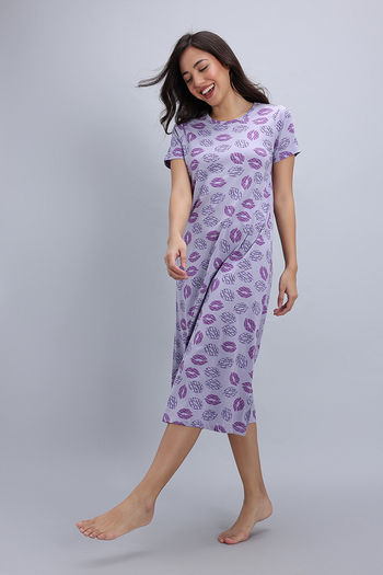 Zivame Knit Cotton Mid Length Nightwear - Wisteria