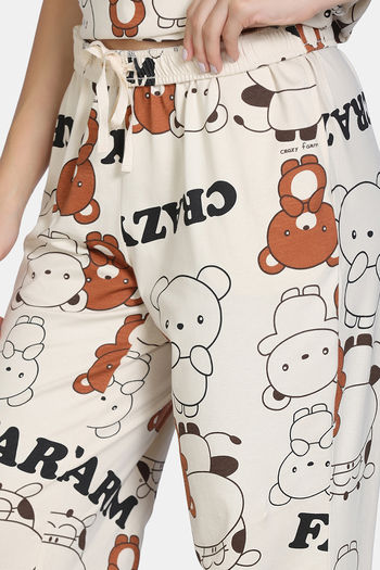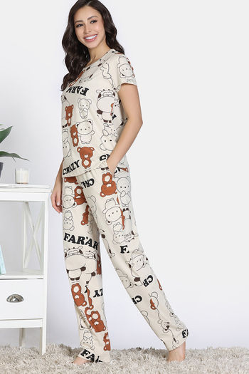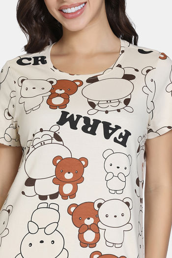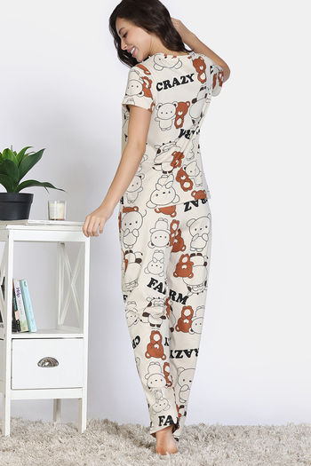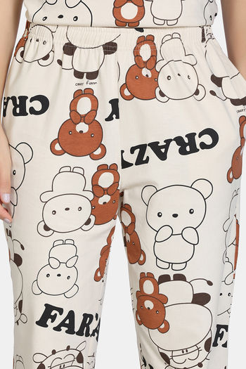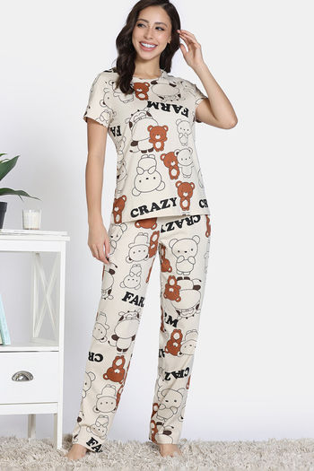 Zivame Farm Lore Knit Cotton Pyajama Set - Whitecap Grey