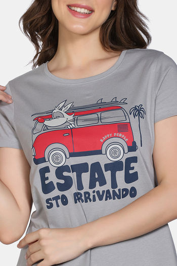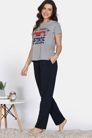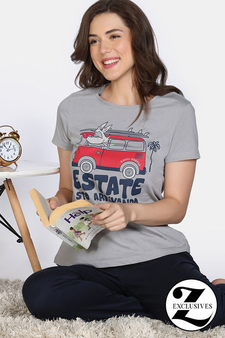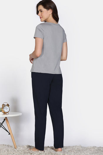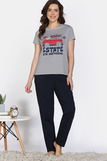Zivame Farm Lore Knit Cotton Pyajama Sets - Ghost Gray