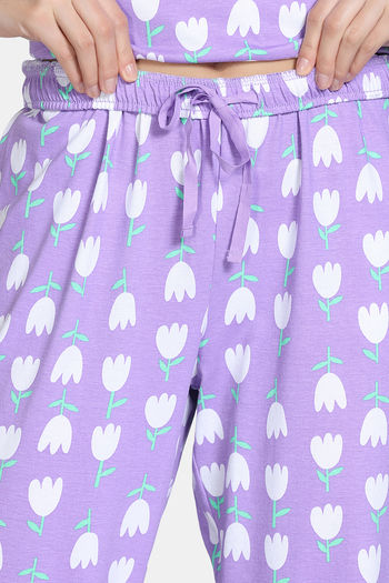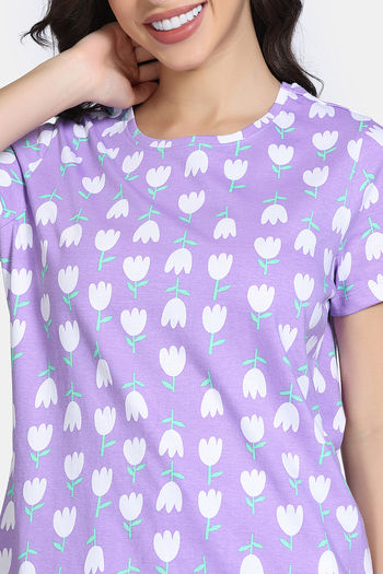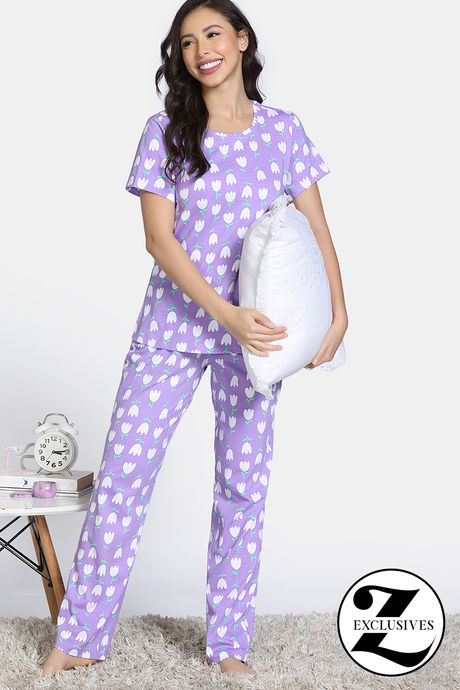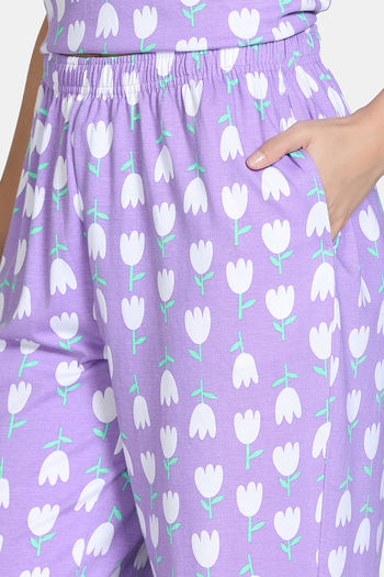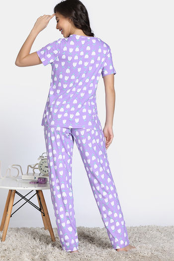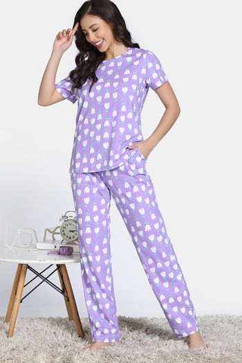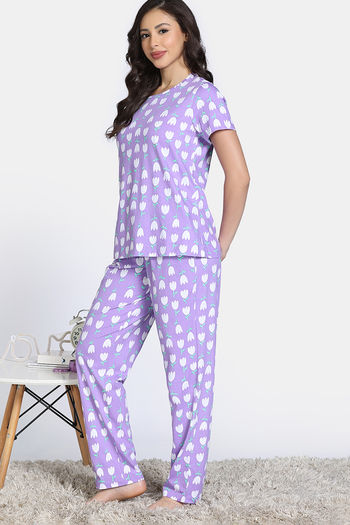 Zivame Farm Lore Knit Cotton Pyajama Sets - Lavender