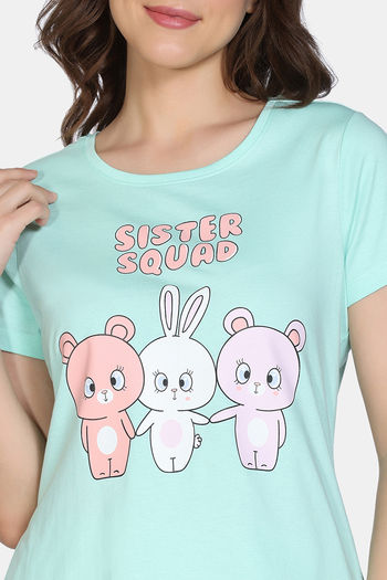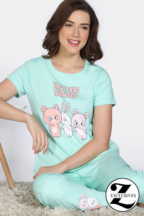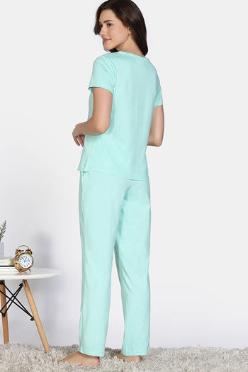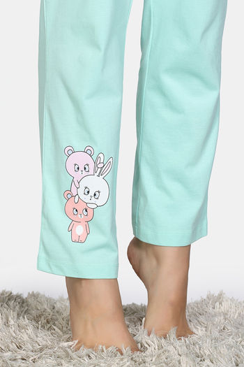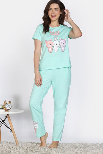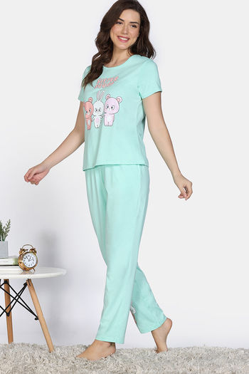 Zivame Farm Lore Knit Cotton Pyajama Sets - Yucca