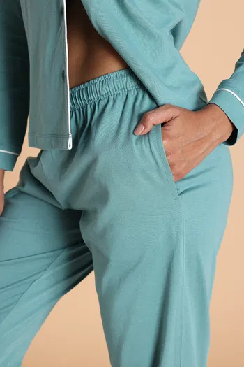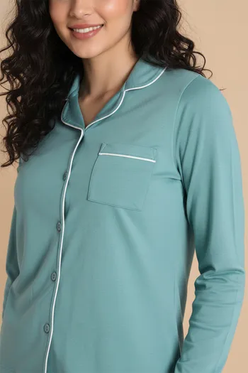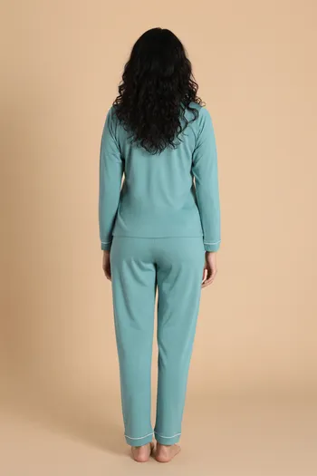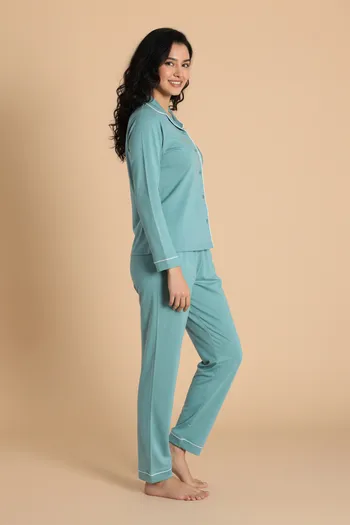 Zivame Knit Cotton Pyjama Set - Beryl Green