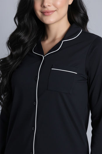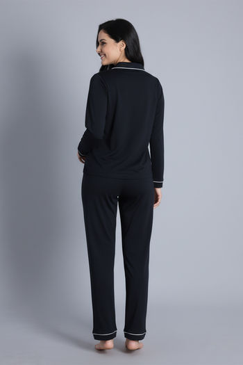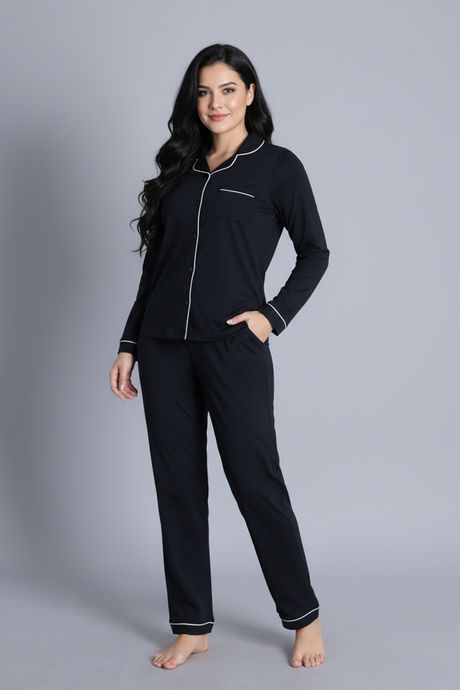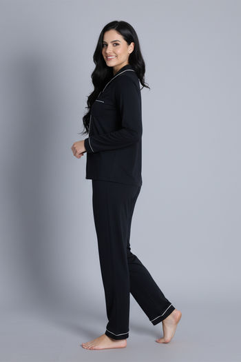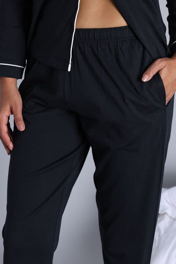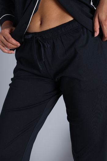 Zivame Knit Cotton Pyjama Set - Black Beauty