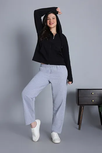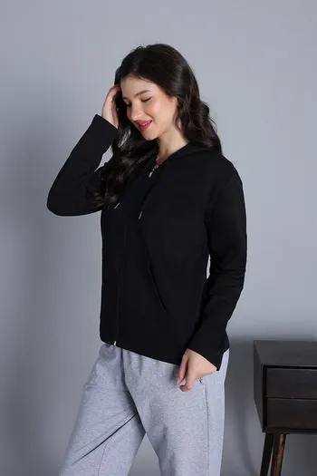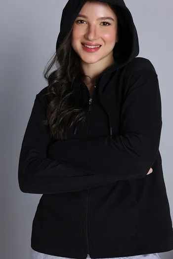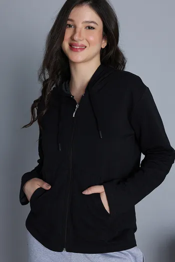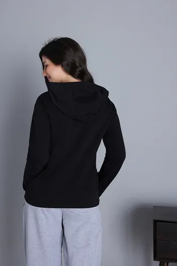 Zivame Knit Cotton Hoodie - Black Beauty