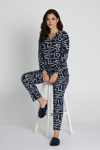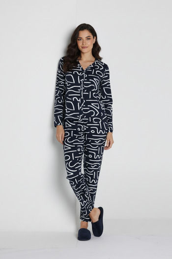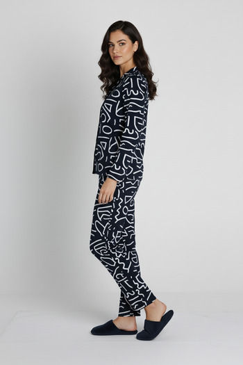 Zivame Knit Cotton Pyjama Set - Black Beauty