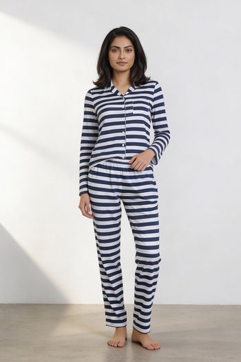 Zivame Knit Cotton Pyjama Set - Black Iris4