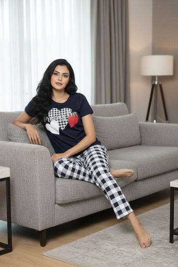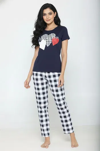 Zivame Knit Cotton Pyjama Set - Blackiris1