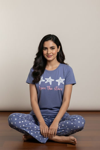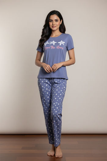 Zivame Knit Cotton Pyjama Set - Bleachedden