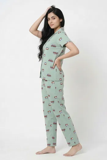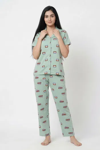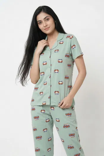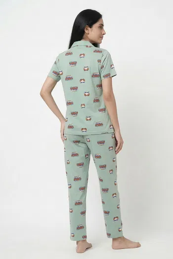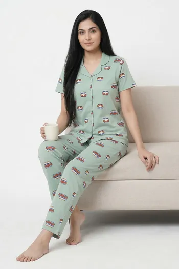 Zivame Knit Cotton Pyjama Set - Cameo Green