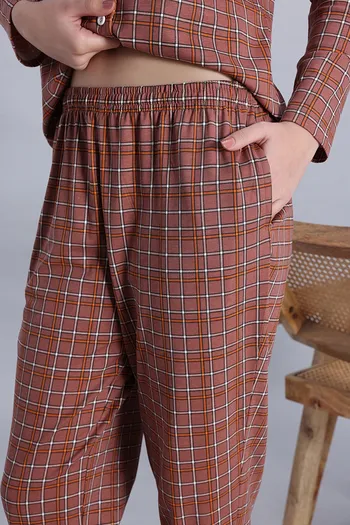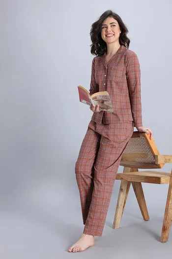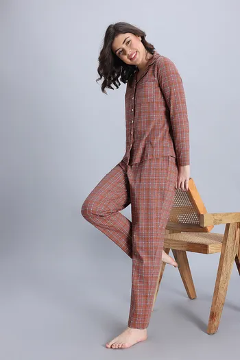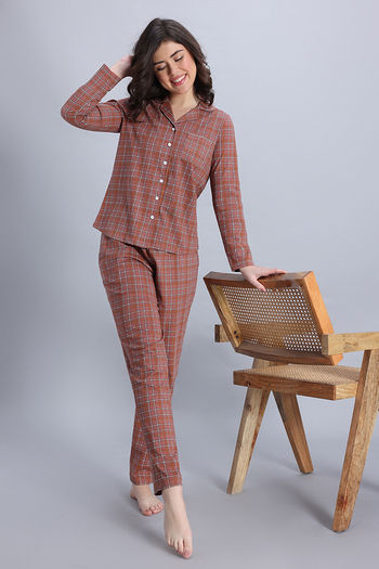 Zivame Knit Cotton Pyjama Set - Cedarwood