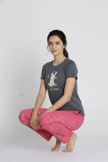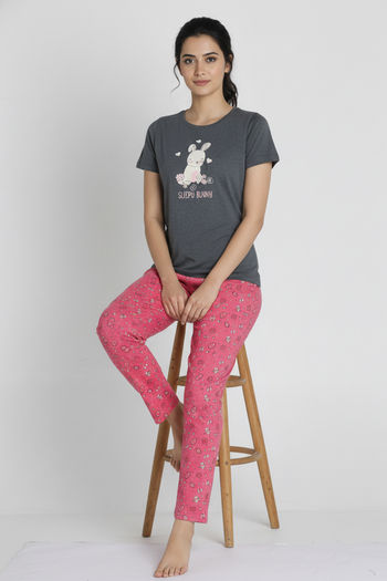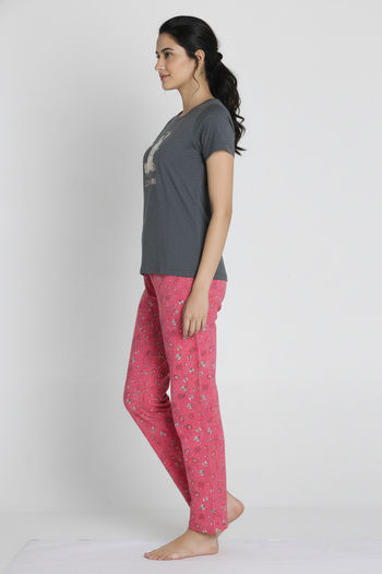 Zivame Knit Cotton Pyjama Set - Claret Red