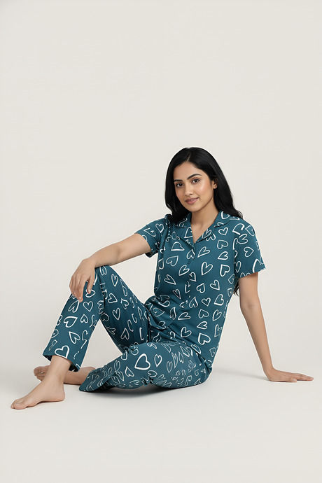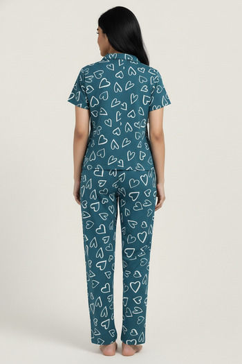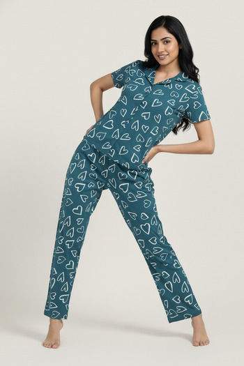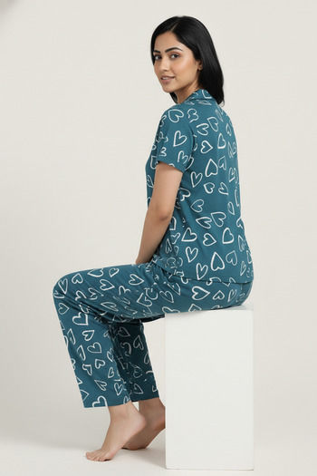Zivame Knit Cotton Pyjama Set - Dragonfly