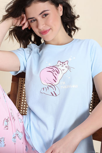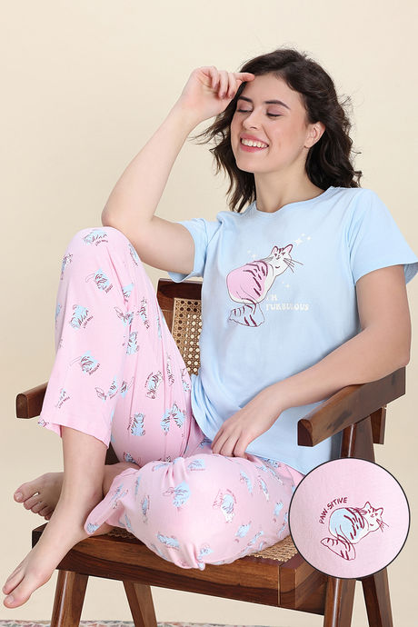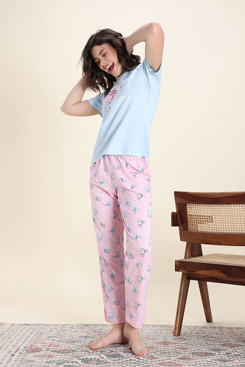 Zivame Farm Lore Knit Cotton Pyjama Set - Fairy Tale