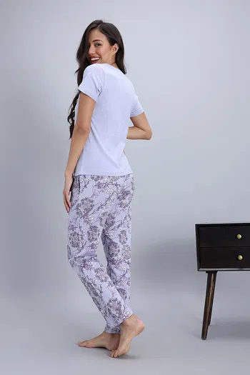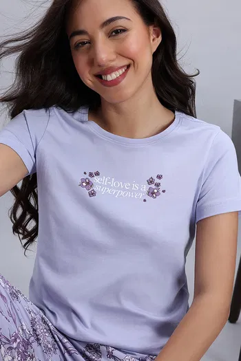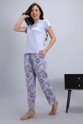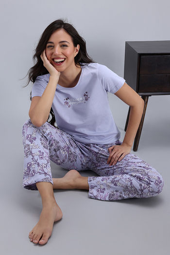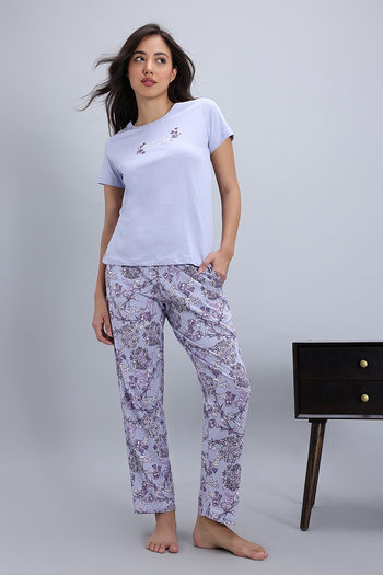 Zivame Knit Cotton Pyjama Set - Heirloom Lilac