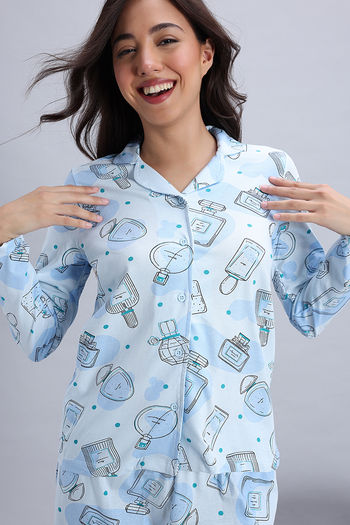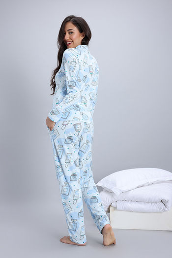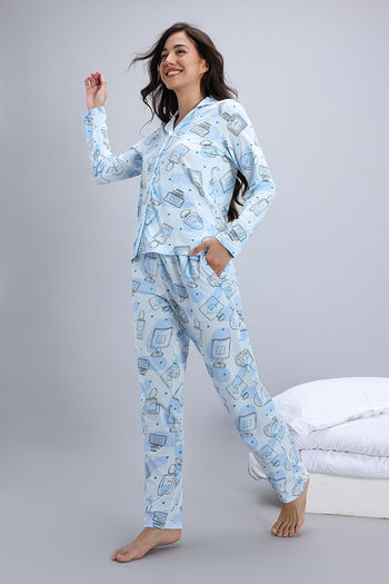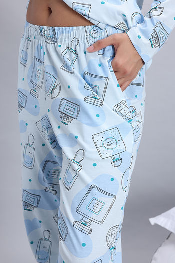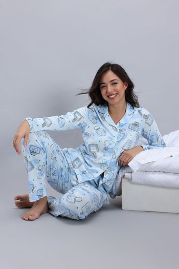Zivame Knit Cotton Pyjama Set - Ice Melt