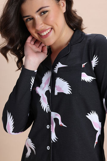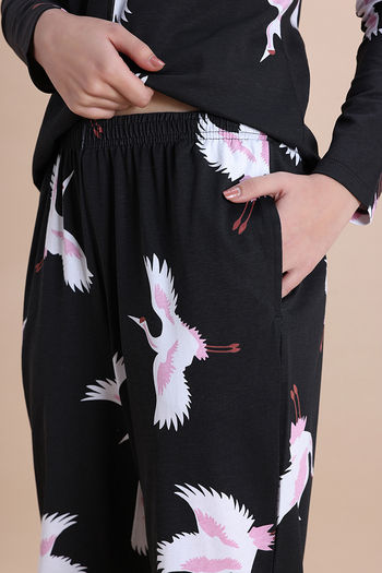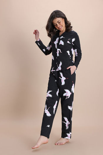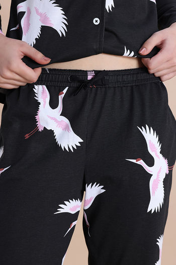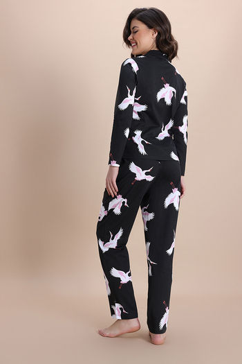 Zivame Knit Cotton Pyjama Set - Jet Black1