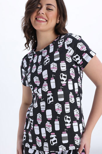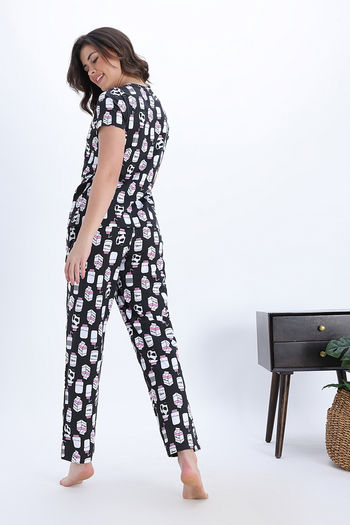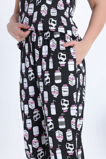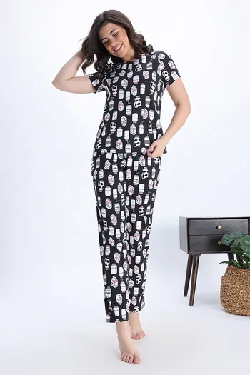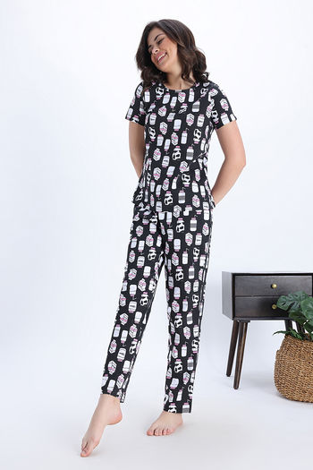 Zivame Knit Cotton Pyjama Set - Jetblack