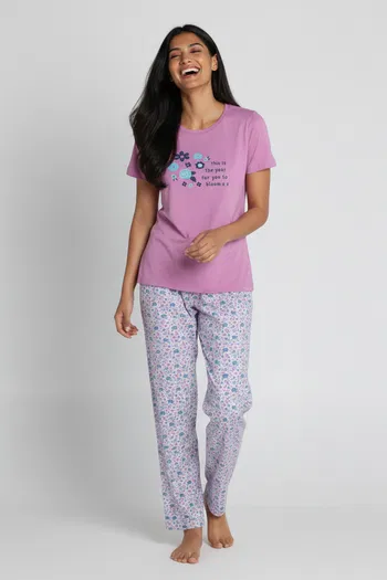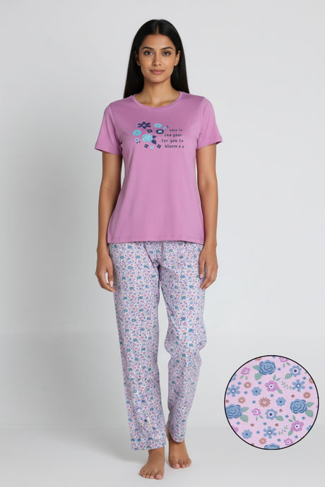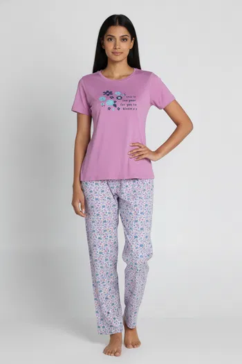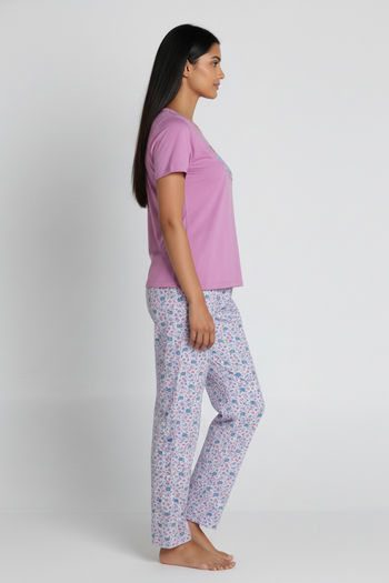 Zivame Knit Cotton Pyjama Set - Light Lilac