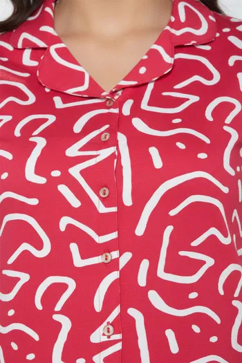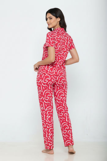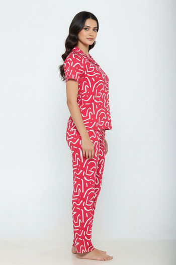 Zivame Knit Cotton Pyjama Set - Mars Red