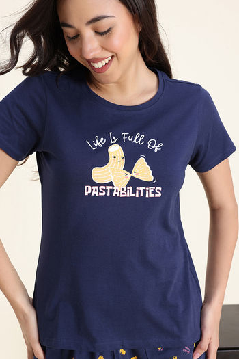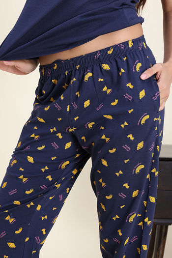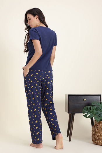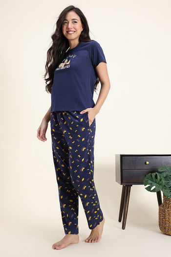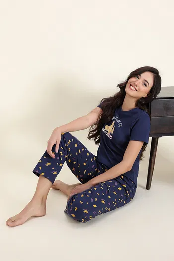 Zivame Farm Lore Knit Cotton Pyjama Set - Naval Academy