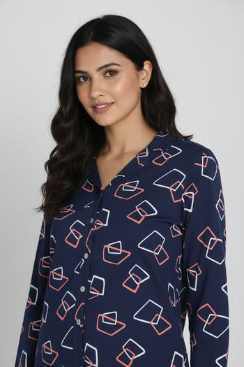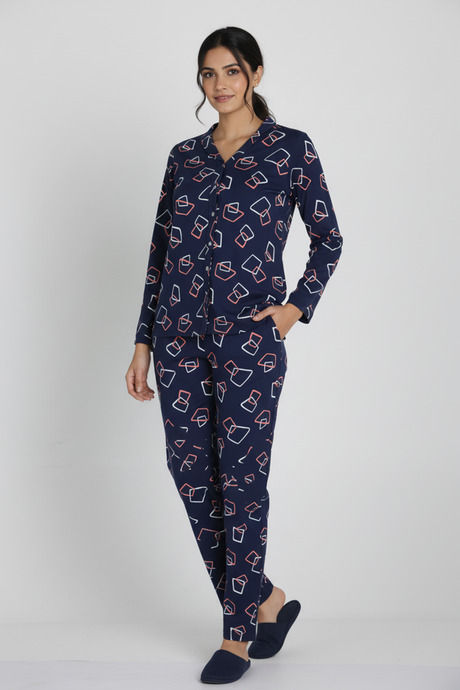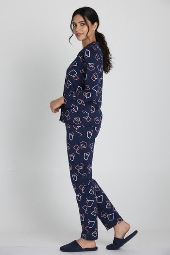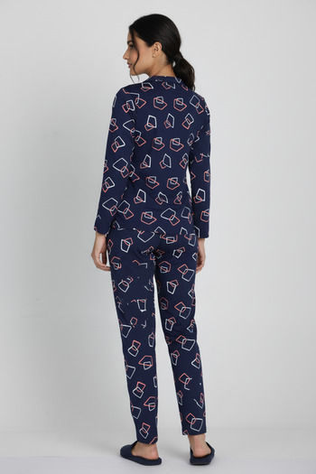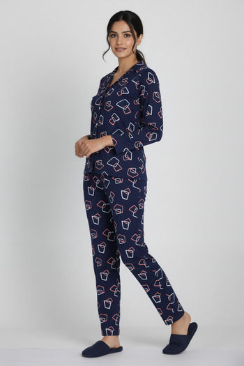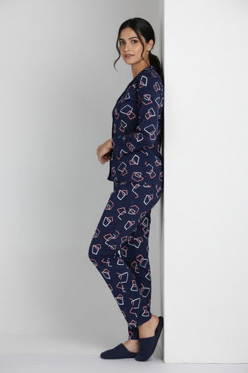 Zivame Knit Cotton Pyjama Set - Navy Blazer