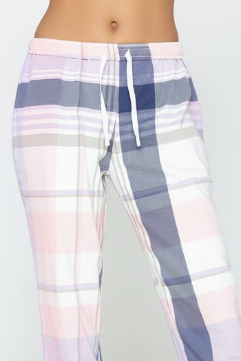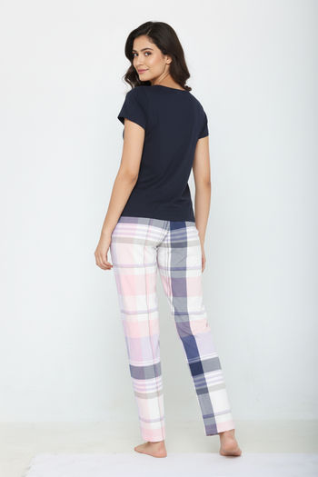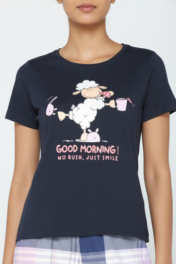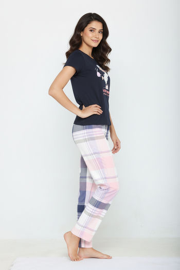 Zivame Knit Cotton Pyjama Set - Navy Peony