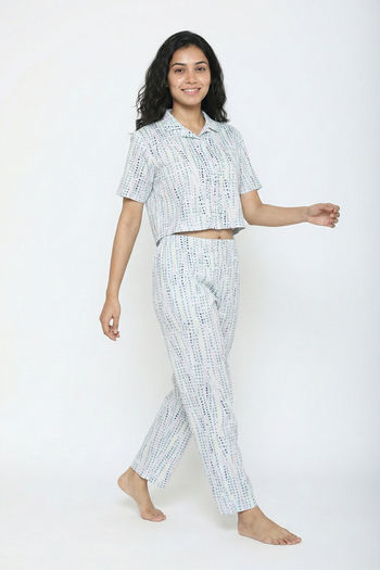 Zivame Knit Cotton Pyjama Set - Nimbus Cloud