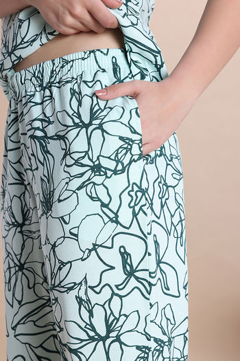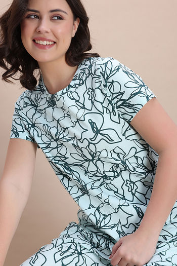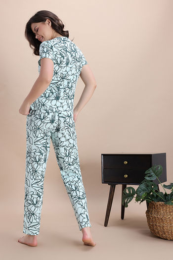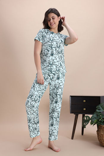 Zivame Knit Cotton Pyjama Set - Opal Blue1