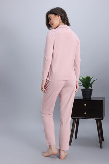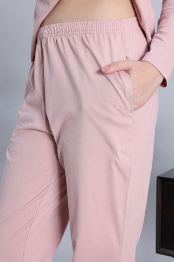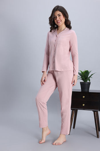 Zivame Knit Cotton Pyjama Set - Palemauve