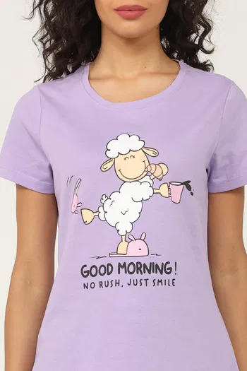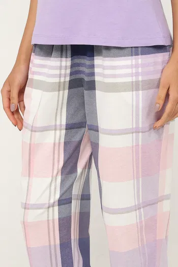 Zivame Knit Cotton Pyjama Set - Pastel Lilac