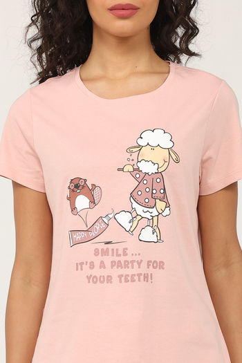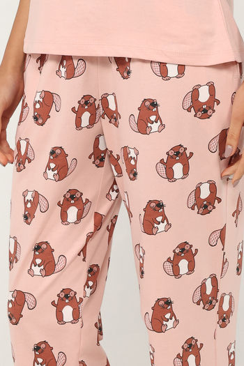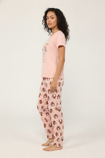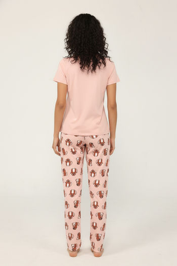 Zivame Knit Cotton Pyjama Set - Peach Skin1