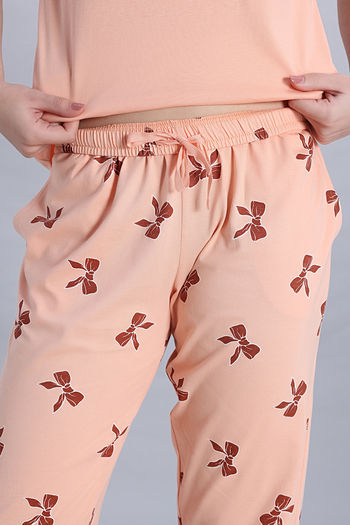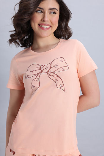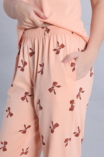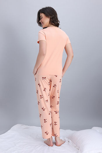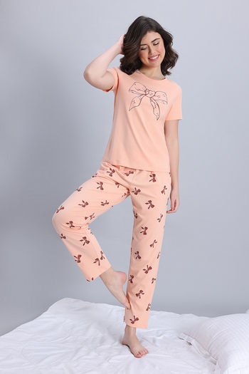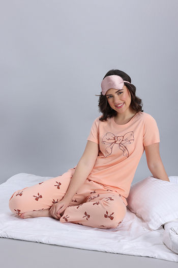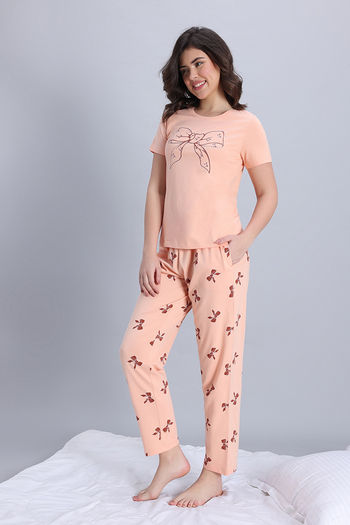 Zivame Knit Cotton Pyjama Set - Peach Whip