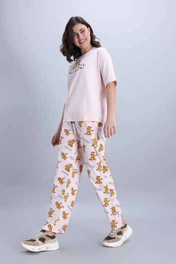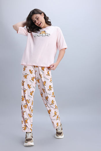 Zivame Garfield Knit Cotton Pyjama Set - Pink Dogwood