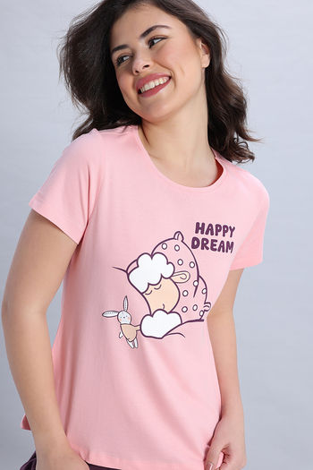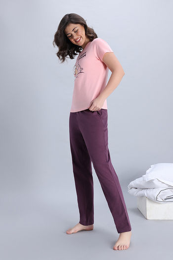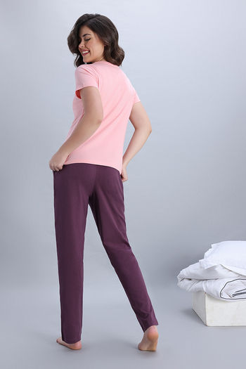 Zivame Knit Cotton Pyjama Set - Quartz Pink