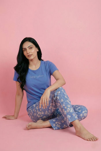 Zivame Knit Cotton Pyjama Set - Riviera