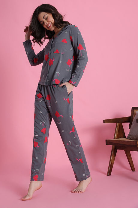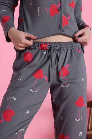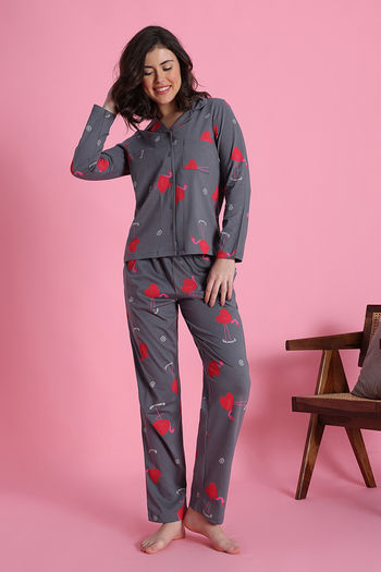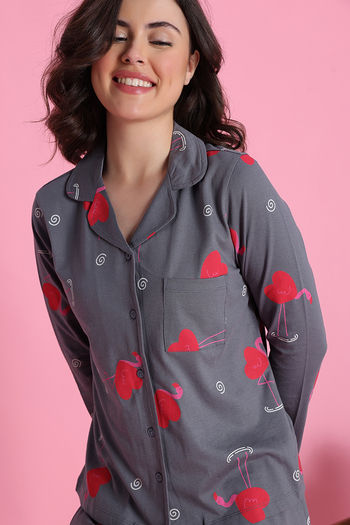 Zivame Knit Cotton Pyjama Set - Steel Grey