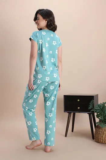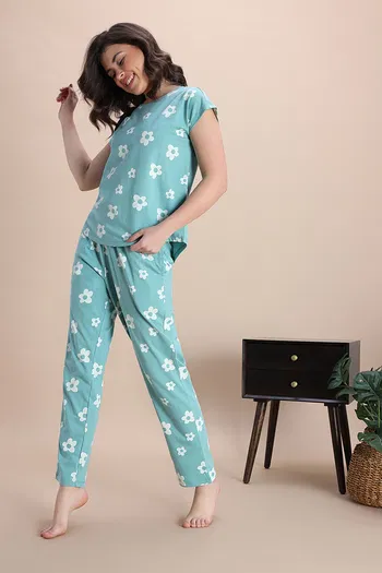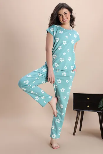 Zivame Knit Cotton Pyjama Set - Wasabi
