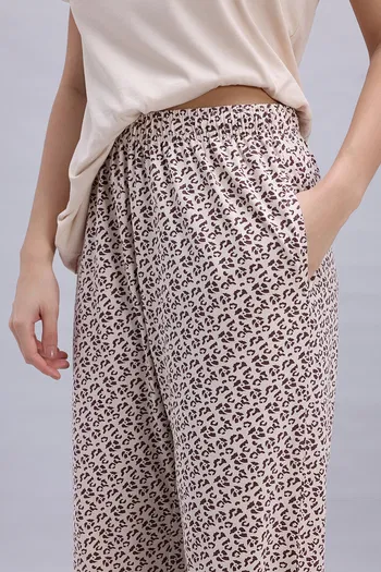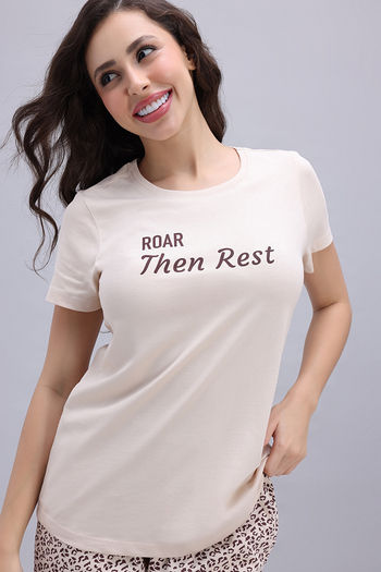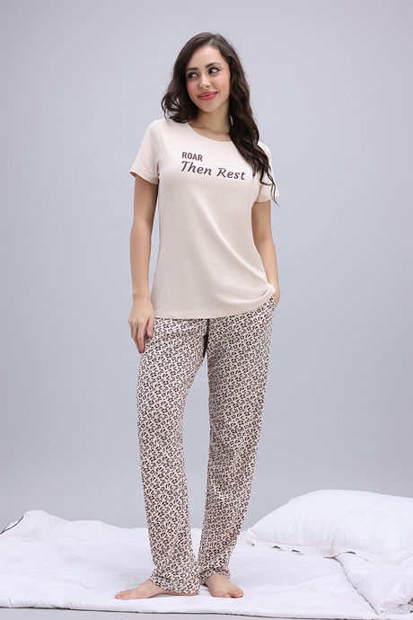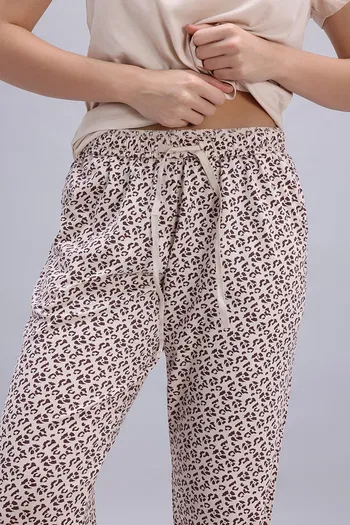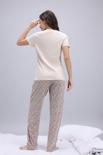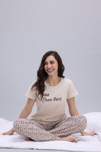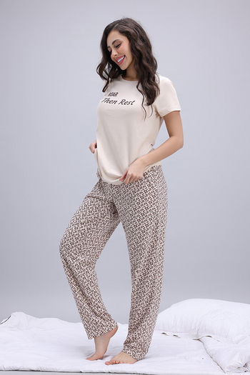 Zivame Knit Cotton Pyjama Set - White Fawn